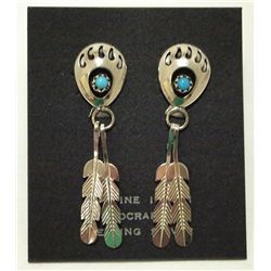Navajo Turquoise Sterling Silver Bear Paw & Feather Post Earrings - Teta Parker Measure 1-1/2" tall by 3/8" wide. Weight: 2g SKU: ...