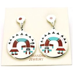 Zuni Multi-Stone Inlay Rainbow Kachina Sterling Silver Post Earrings - Fred & Lolita Natachu