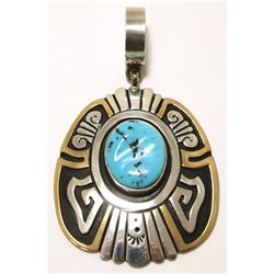 Navajo Turquoise 12k Gold Fill over Sterling Silver Pendant - Tommy Singer