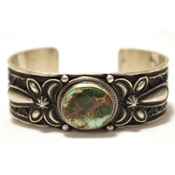 Navajo Royston Turquoise Sterling Silver Cuff Bracelet - Andy Cadman