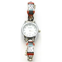 Zuni Multi-Stone Inlay Red Maiden Sterling Silver Women's Watch - Joyce Waseta