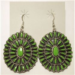 Zuni Turquoise Needlepoint Sterling Silver French Hook Earrings - Eva Booqua Measure 2-1/8" tall by 1-3/8" wide. Weight: 11.4g SKU: ea...