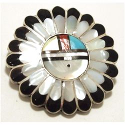 Vintage Old Pawn Zuni Multi-Stone Inlay Sun Face Sterling Silver Necklace - Don & Velma Dewa Measures 20" around by 3/16" wide (link...
