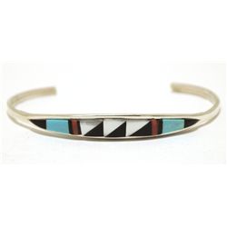 Zuni Multi-Stone Inlay Sterling Silver Cuff Bracelet - Cena Weebothee Measures 4-3/4" around with a 1-3/8" gap, 1/4" wide. Stones p...