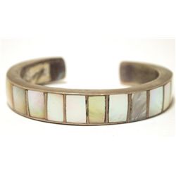 Vintage Old Pawn Navajo Mother of Pearl Inlay Sterling Silver Cuff Bracelet - BK Spencer