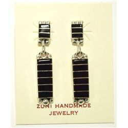 Zuni Onyx Inlay Sterling Silver Post Earrings - Eldrick Seoutewa Measure 1-3/8" tall by 1/4" wide. Weight: 4.4g SKU: ea0768 ---------...