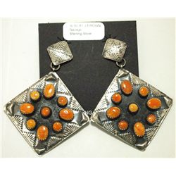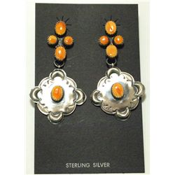 Navajo Spiny Oyster Sterling Silver Post Earrings - Albert James Brown Measure 2-7/8" tall by 2" wide. Weight: 17.8g SKU: ea0810 ----...
