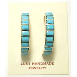 Zuni Turquoise Inlay Sterling Silver Curved Post Earrings - Rosina Kanesta