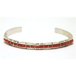 Zuni Coral Overlay Sterling Silver Cuff Bracelet - Sheldon Lalio Measures 5-3/8" around with a 1-3/8" gap, 3/16" wide. Weight: 11....