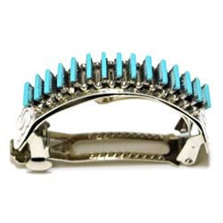 Zuni Turquoise Sterling Silver Half-Ring Hair Barrette - Raynard Lastyone