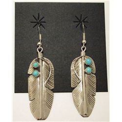 Navajo Turquoise Dots Sterling Silver Feather Bracelet - Chris Charley