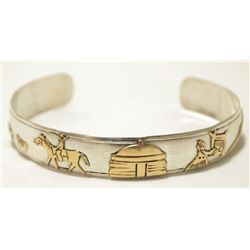 Navajo Sterling Silver Horses Large Cuff Bracelet - Richard Singer
