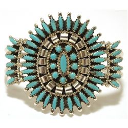 Zuni Turquoise Inlay Sterling Silver Cuff Bracelet - Larry Loretto
