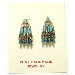 Zuni Mother of Pearl & Turquoise Inlay Sterling Silver Post Earrings - Orena Leekya Measure 5/8" tall by 5/16" wide. Weight: 2g SK...