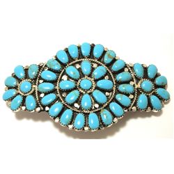 Navajo Turquoise Cluster Sterling Silver Hair Barrette - Juliana Williams Measures 2" tall by 3-1/2" wide. Barrette on back measures 2&q...