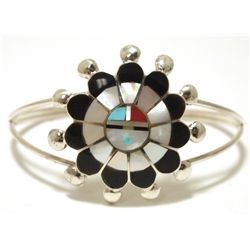 Zuni Multi-Stone Inlay Sun Face Sterling Silver Cuff Bracelet - Pauline Lonjose