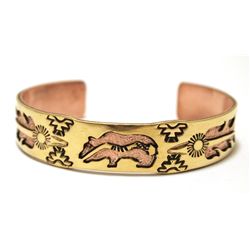 Navajo 12k Gold Fill Pueblo over Sterling Silver Cuff Bracelet - Roger Nelson