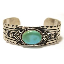Navajo Turquoise Sterling Silver Cuff Bracelet - Delbert Gordon