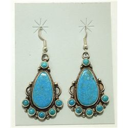Navajo Turquoise Sterling Silver French Hook Earrings - Dean Brown Measure 2-1/4" tall by 1" wide. Weight: 13.2g SKU: ea0813 --------...
