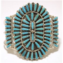 Zuni Turquoise Inlay Sterling Silver Cuff Bracelet - Elkus Gasper