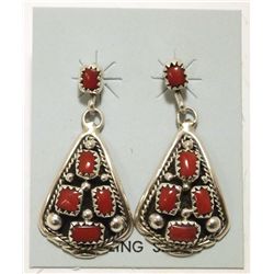 Navajo Coral Sterling Silver Curved Post Earrings - Melvin Chee Measure 1-3/8" tall by 3/4" wide. Weight: 6.8g SKU: ea0652 ----------...