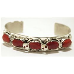 ZunI Coral Sterling Silver Snakes Cuff Bracelet - Effie Calavaza44 - ZunI Coral Sterling Silver Snakes Cuff Bracelet - Effie Calavaza