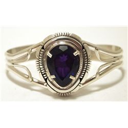 Navajo Amethyst Sterling Silver Cuff Bracelet - Eugene Belone