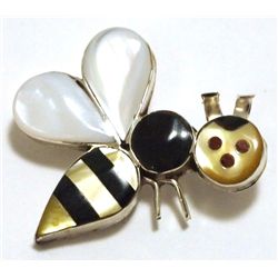 Zuni Multi-Stone Inlay Bumble Bee Sterling Silver Pendant & Pin - Angus Ahiyite Measures 1" tall by 1-1/4" wide. Bale opening measur...