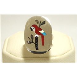 Zuni Multi-Stone Inlay Macaw Sterling Silver Women's Ring - Sanford C Edaakie