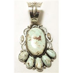 Navajo Dry Creek Turquoise Sterling Silver Pendant - Mary Ann Spencer Measures 3-1/4" tall by 1-3/4" wide including bale. Bale opening m...