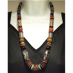 Navajo Turquoise & 12k Gold Fill over Sterling Silver Beads Necklace - Tommy Singer