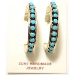 Zuni Turquoise Sterling Silver Half-Ring Post Earrings - Erica Paquin Measure 1/2" tall by 1/8" wide by 3/8" deep. Weight: 2.2g S...