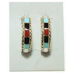 Zuni Lapis Lazuli Inlay Sterling Silver Half-Ring Post Earrings - Susan Kalestewa