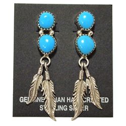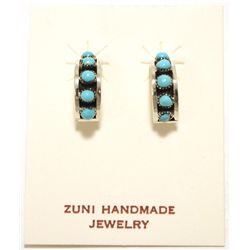 Zuni Turquoise Sterling Silver Snake Post Earrings - Effie Calavaza