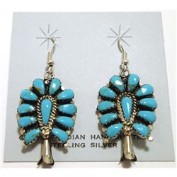 Navajo Turquoise Sterling Silver Squash Blossom French Hook Earrings - Lisa Williams Measure 2" tall by 7/8" wide. Weight: 7.9g SKU: e...