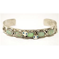 Zuni Opal Sterling Silver Snake Cuff Bracelet - Effie Calavaza