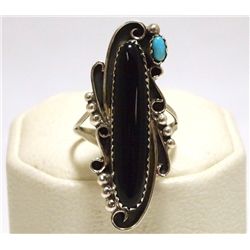 Navajo Onyx & Turquoise Sterling Silver Women's Ring - Susan Yazzie Face measures 1-5/8" tall by 5/8" wide. Band measures 1/1...