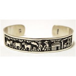 Navajo Sterling Silver Pueblo Scene Cuff Bracelet - Ray & Shaline Billy