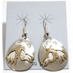 Navajo 12k Gold Fill Horse Head Sterling Silver French Hook Earrings - Roger Jones