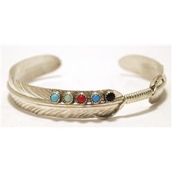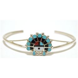 Zuni Multi-Stone Inlay Maiden Sterling Silver Cuff Bracelet - Joyce Waseta