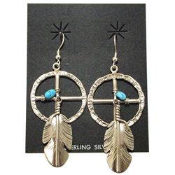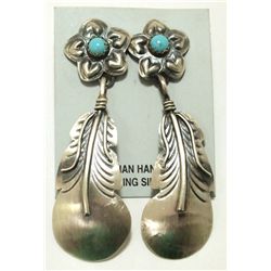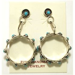 Zuni Turquoise Dot Sterling Silver Ring Post Earrings - Carol Allopowa Measure 1-7/8" tall by 3/16" wide by 1-1/8" deep. Weight: 7...