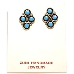 Zuni Turquoise Sterling Silver Post Earrings - Carlene Hattie