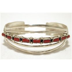 Navajo Coral Sterling Silver Cuff Bracelet - Wilbert Benally