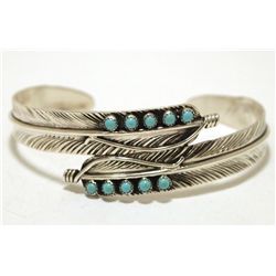 Navajo Turquoise Sterling Silver Double Feather Cuff Bracelet - Virgil Reeder