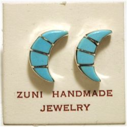 Zuni Turquoise Inlay Crescent Moon Sterling Silver Post Earrings - Norton Kinsel749 - Zuni Turquoise Inlay Crescent Moon Sterling Silver Post Earrings - Norton Kinsel