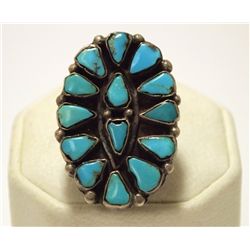 Old Pawn Zuni Turquoise Sterling Silver Women's Ring758 - Old Pawn Zuni Turquoise Sterling Silver Women's Ring