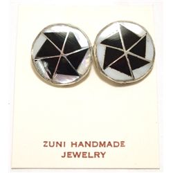 Zuni Turquoise Inlay Sterling Silver Post Earrings - Antoinette Ahiyite