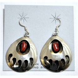 Navajo Coral Bear Paw Sterling Silver French Hook Earrings - Virginia Johnson Measure 2" tall by 1" wide. Weight: 6.3g SKU: ea0285 --...