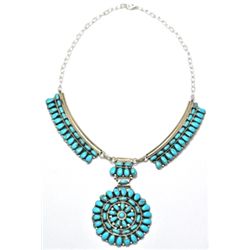 Navajo Turquoise Cluster Necklace - Juliana Williams Measures 17" around. Pendant measures 2" in diameter. Side strips measure 3" l...