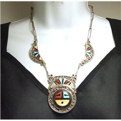Vintage Old Pawn Zuni Multi-Stone Inlay Sun Face Sterling Silver Necklace - Don & Velma Dewa310 - Vintage Old Pawn Zuni Multi-Stone Inlay Sun Face Sterling Silver Necklace - Don & Velma Dewa